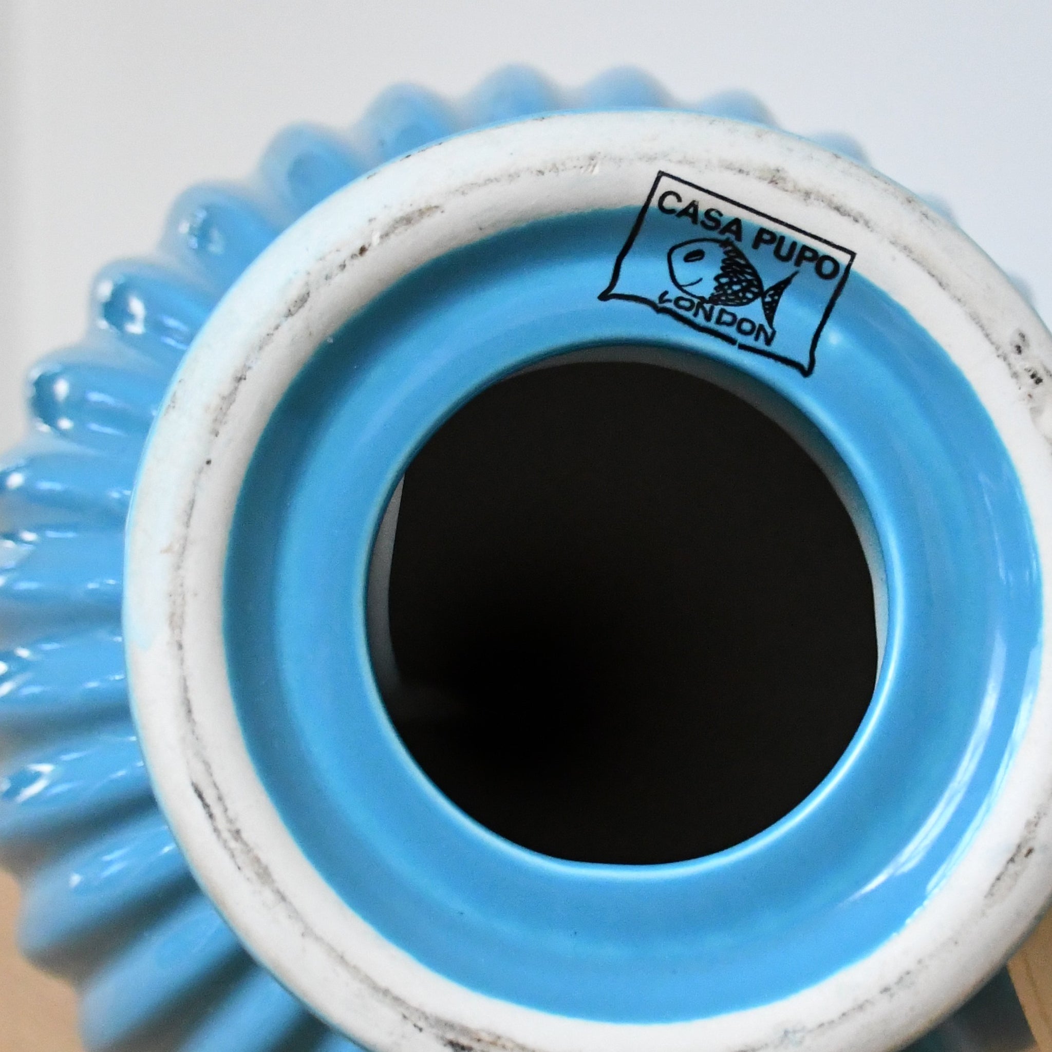 Elegantly shaped, displaying a blue glaze ceramic body by Casa Pupo.