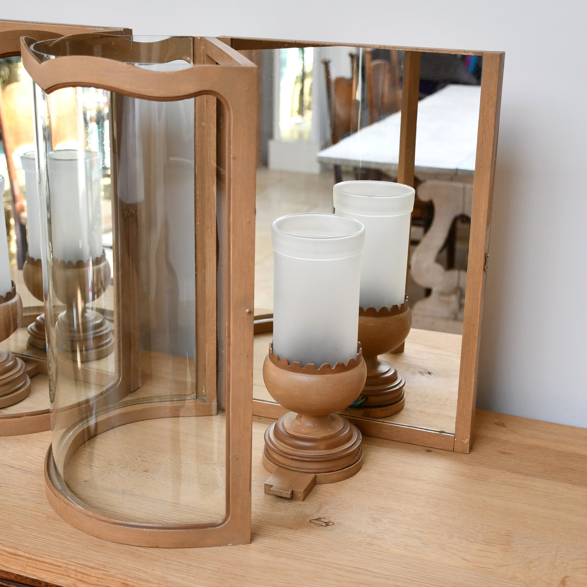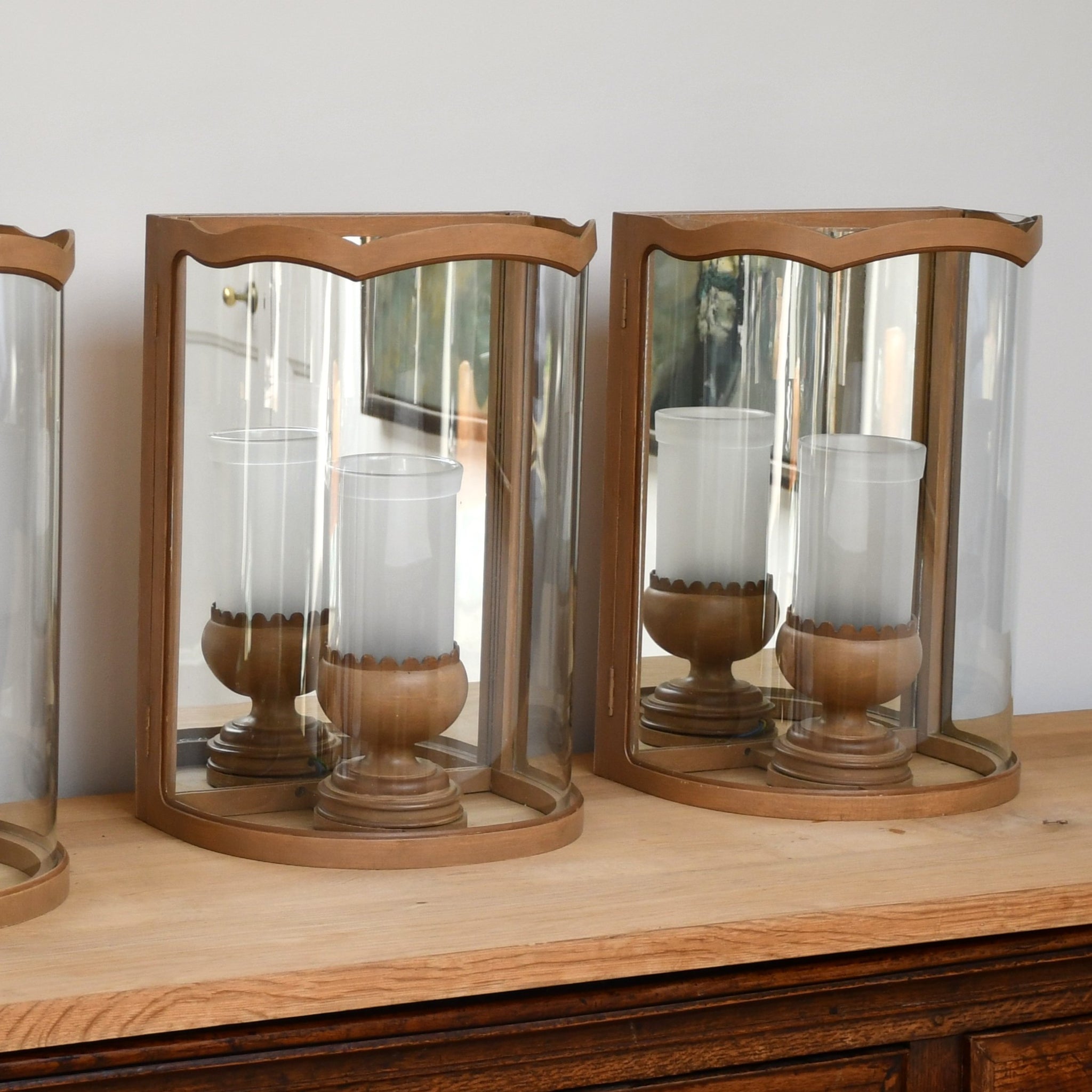 Each displaying limed oaked coloured - hand painted frames with curved glass. Internally all have mirror backings with frosted glass funnels, which hides the bayonet bulb fittings.