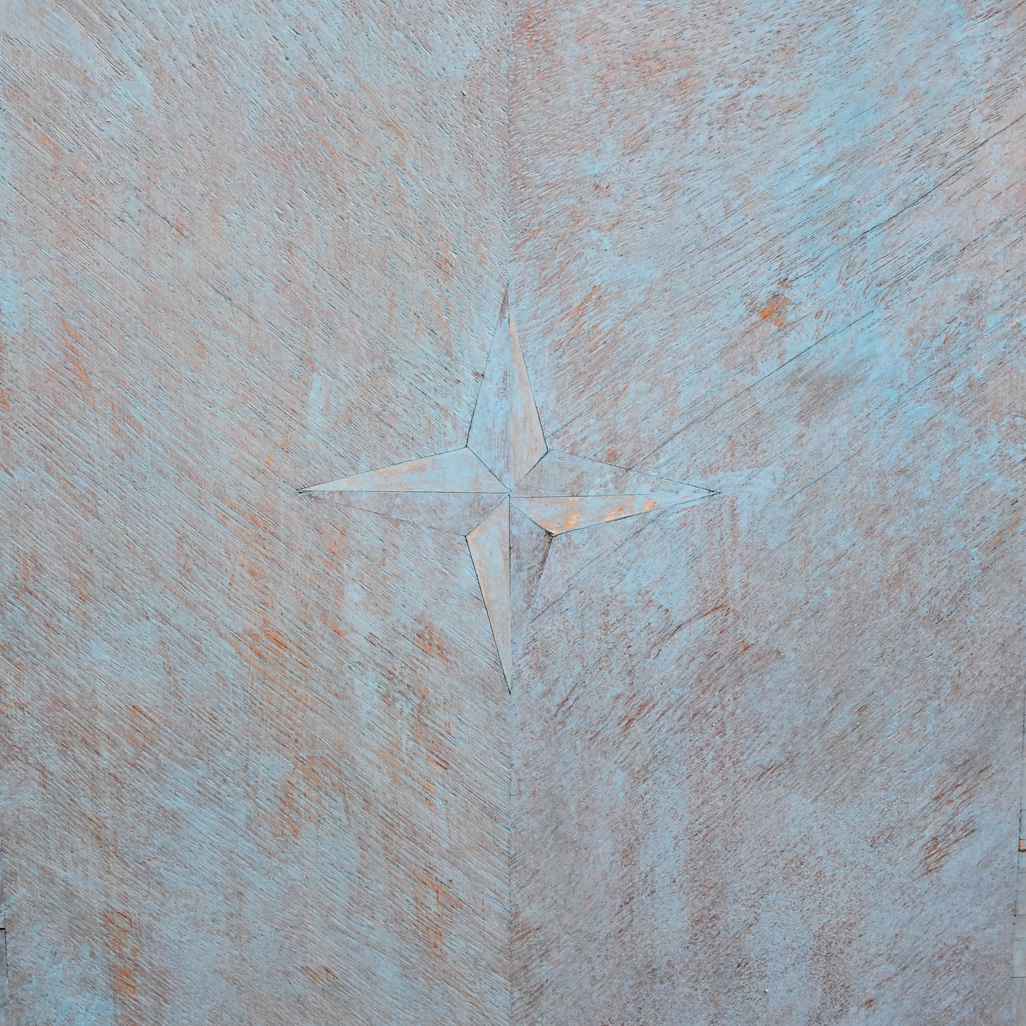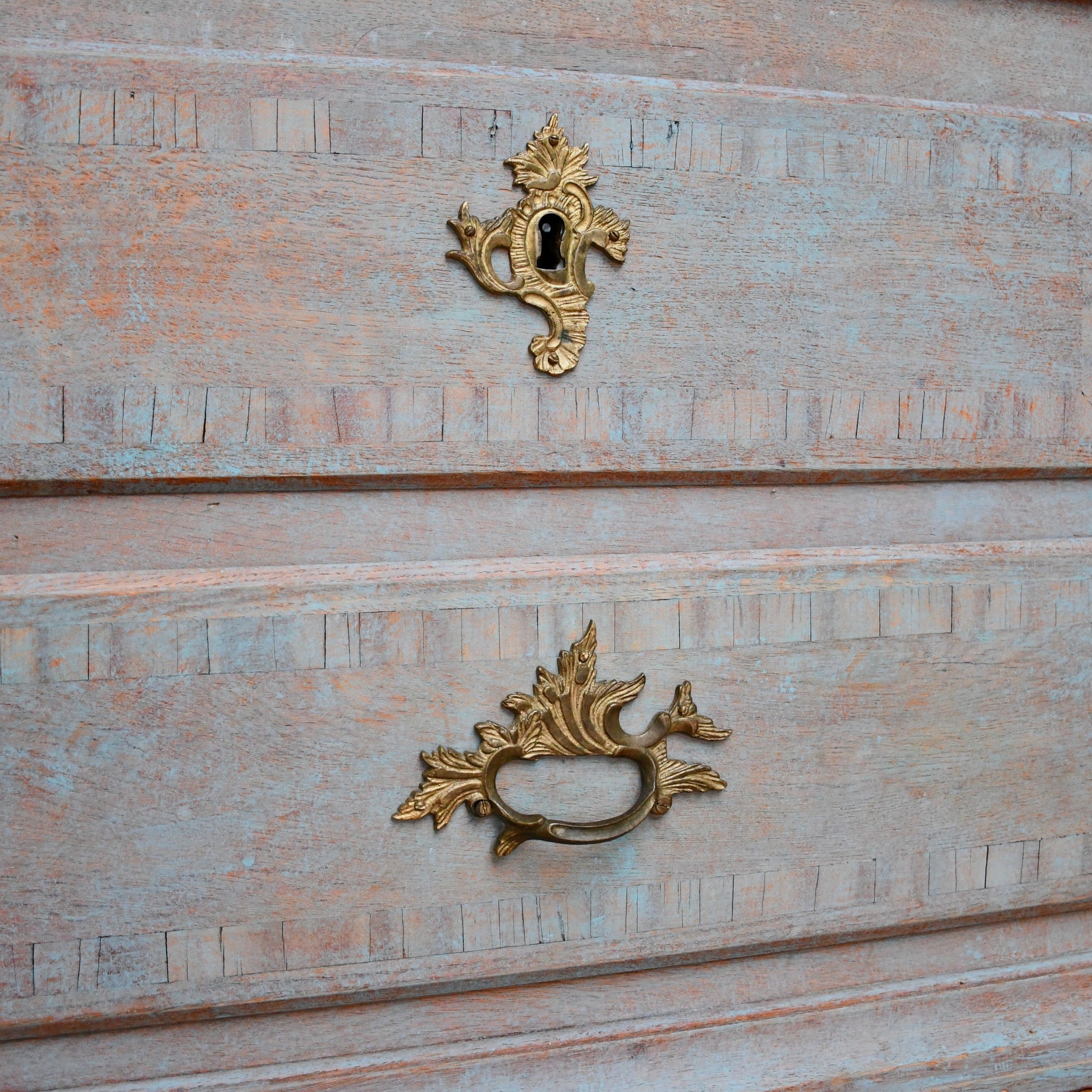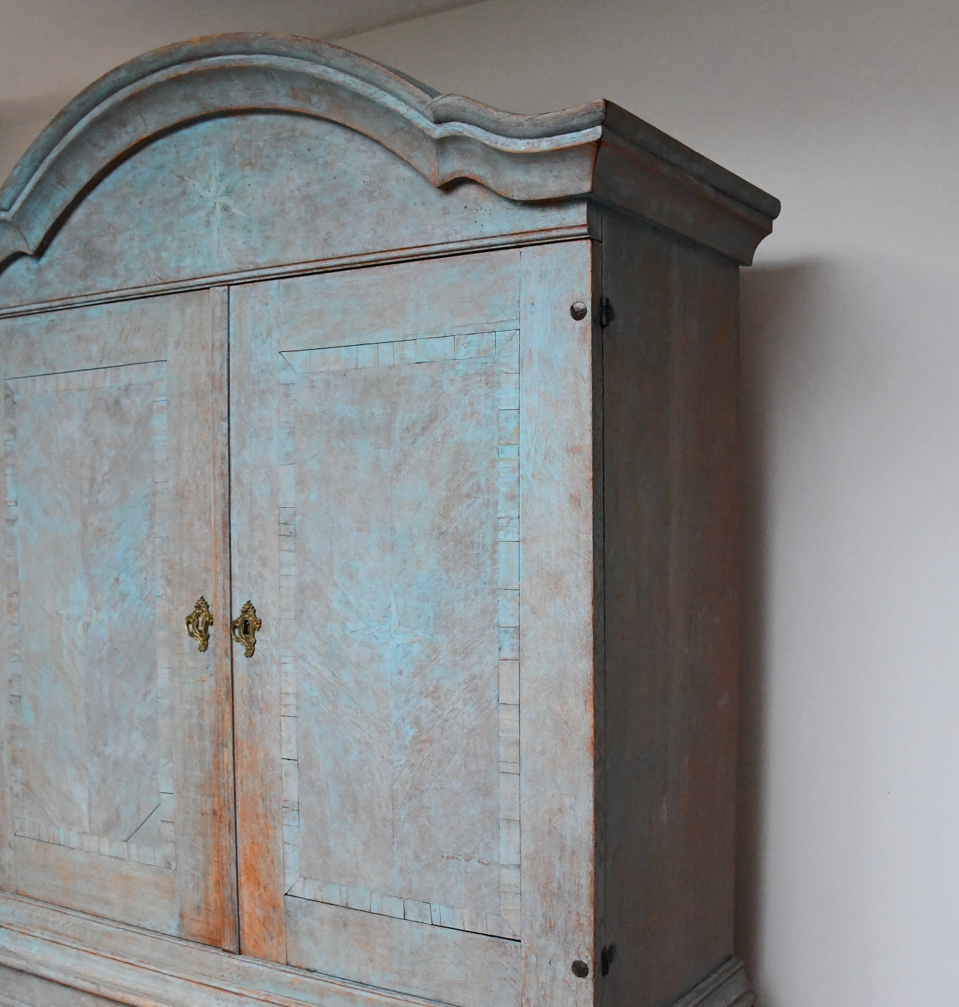 The cabinet displays a wonderful blue/grey distressed painted finish.