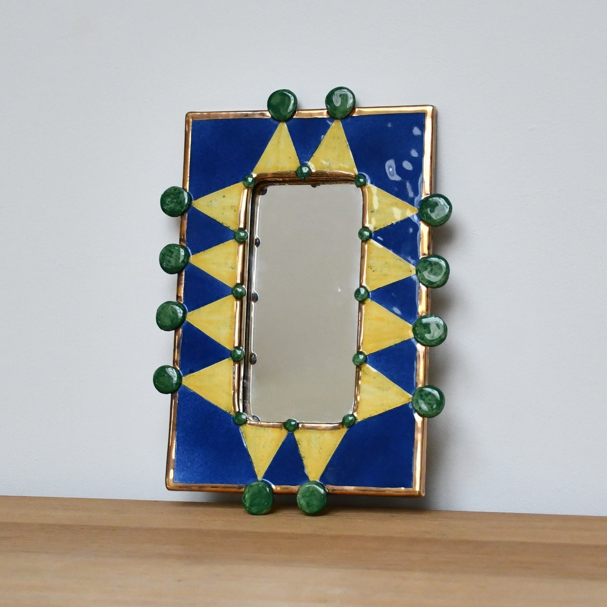 Decorative ceramic mirror made by artist Michelle Ohlson for Made in Gloucestershire.