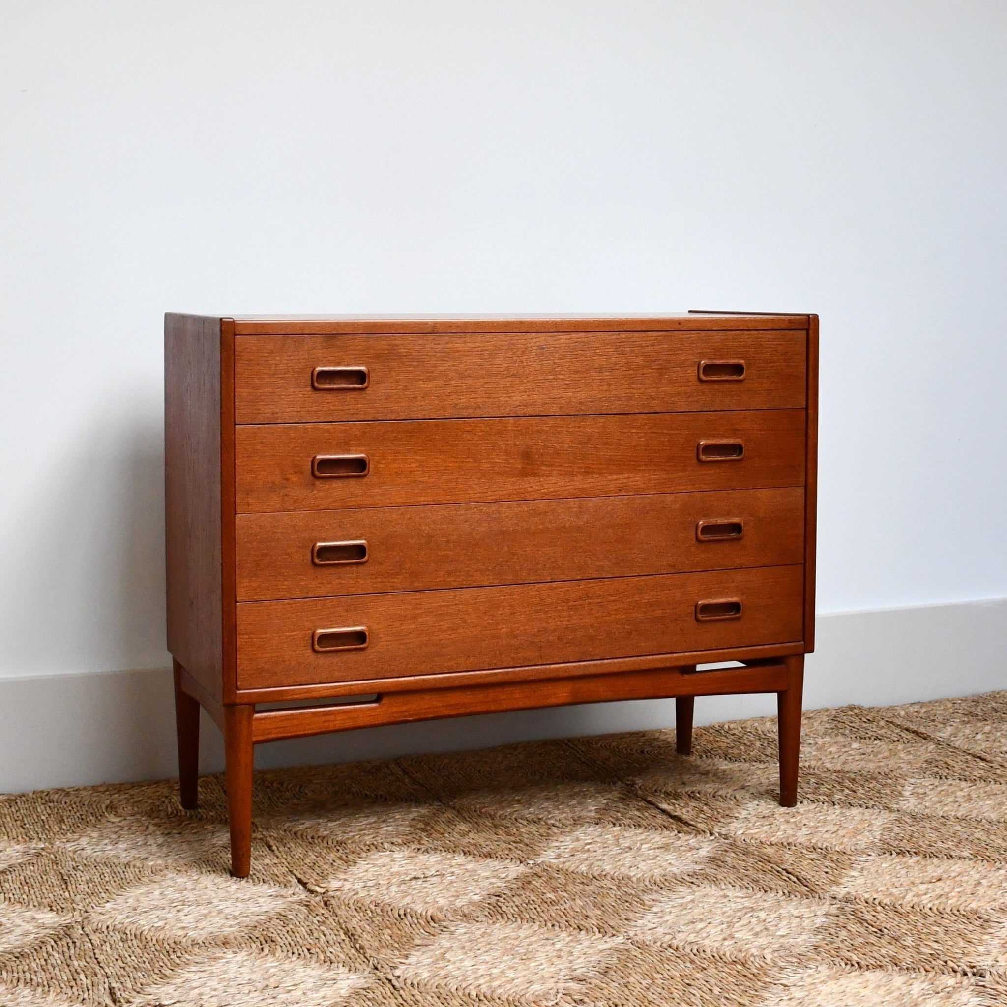 Stylish teak chest of drawers by Arne Hovmand-Olsen for Mogends Kold, Circa 1950/60s.